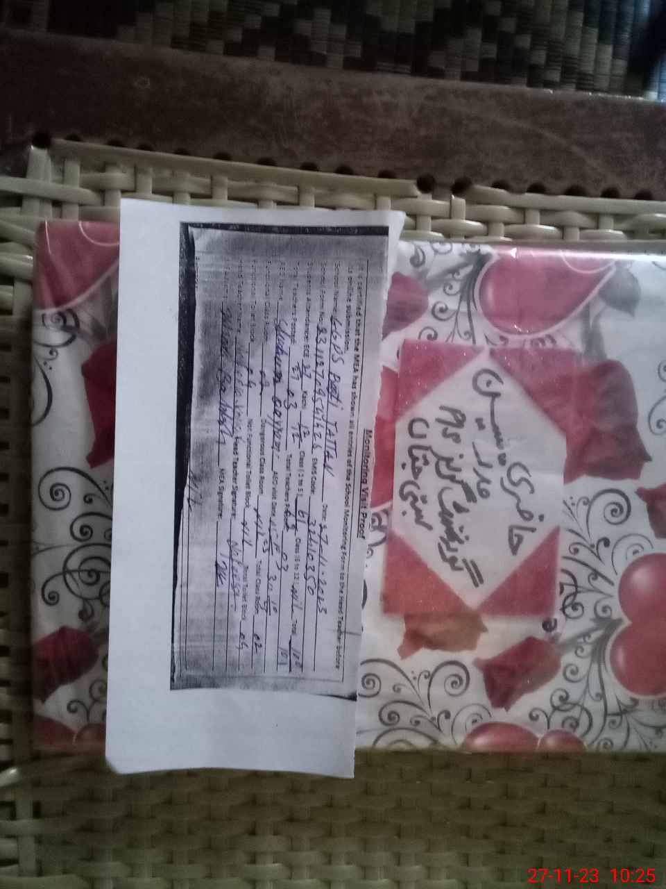 | Monitoring Date: 27-11-2023 | Start Time: 27-11-2023 09:53 AM | End Time: 27-11-2023 10:26 AM | Name of MEA: Kh**** Ba**** | |