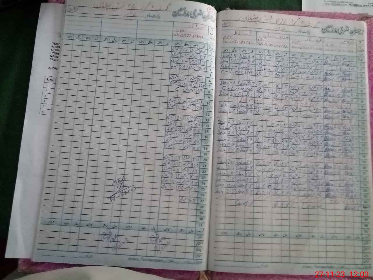 | CNIC | Full Name | Designation | R/C | Absence During Last Calender Month |