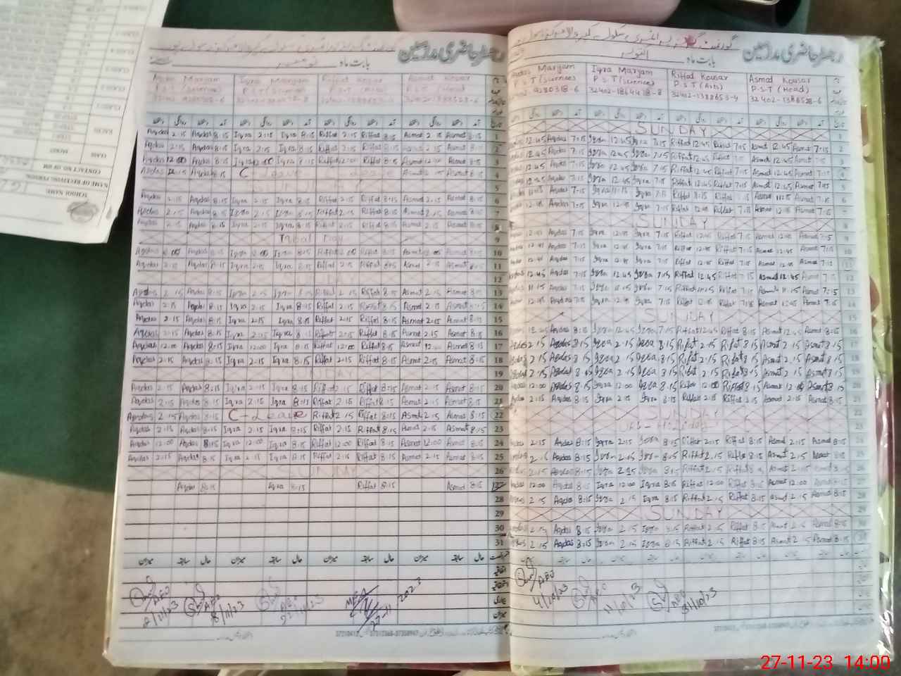| CNIC | Full Name | Designation | R/C | Absence During Last Calender Month |