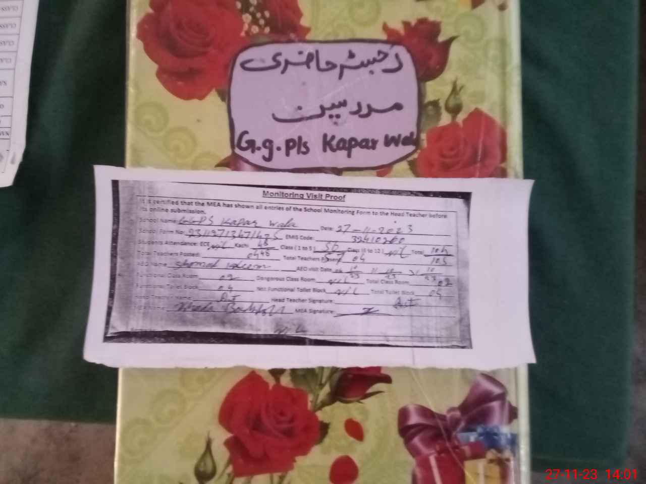| Attendance Register | Head Teacher | MEA with School | Visit Proof |