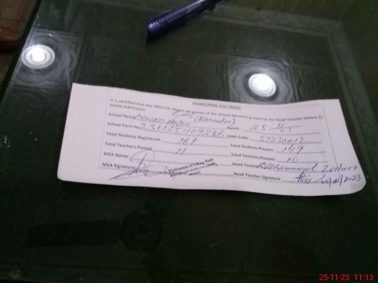 | Monitoring Date: 25-11-2023 | Start Time: 25-11-2023 10:52 AM | End Time: 25-11-2023 11:33 AM | Name of MEA: Mu**** Is**** bu**** | |