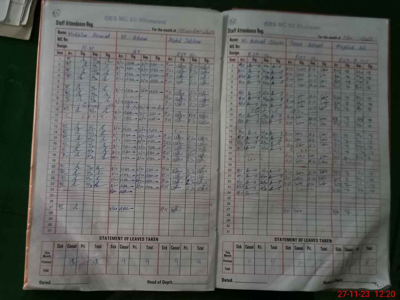 | EMIS Code: 36420061 | Name of School: GES MC NO.6-B, RAILWAY COLONY, KHANEWAL | |||