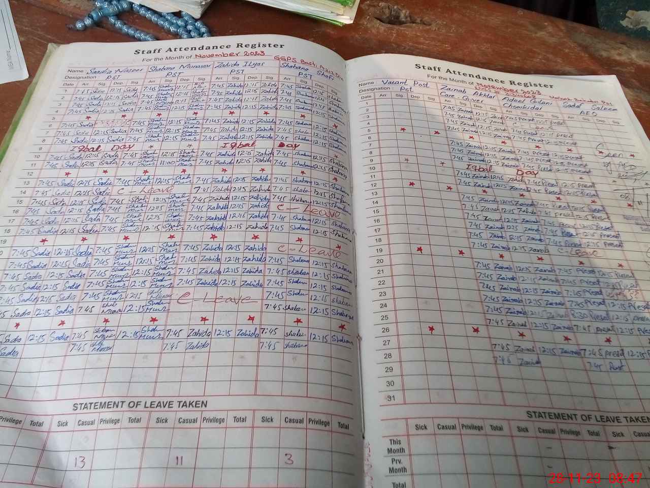 | Leave | Duty | Absent | Maternity | Medical | Ex- Pak |