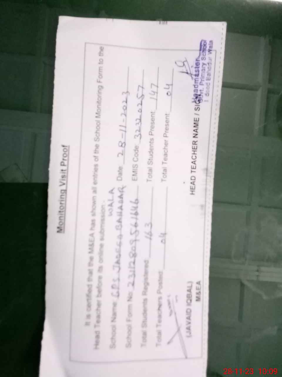| EMIS Code: 32320257 | Name of School: GPS JADEED BAHADUR WALA | |||