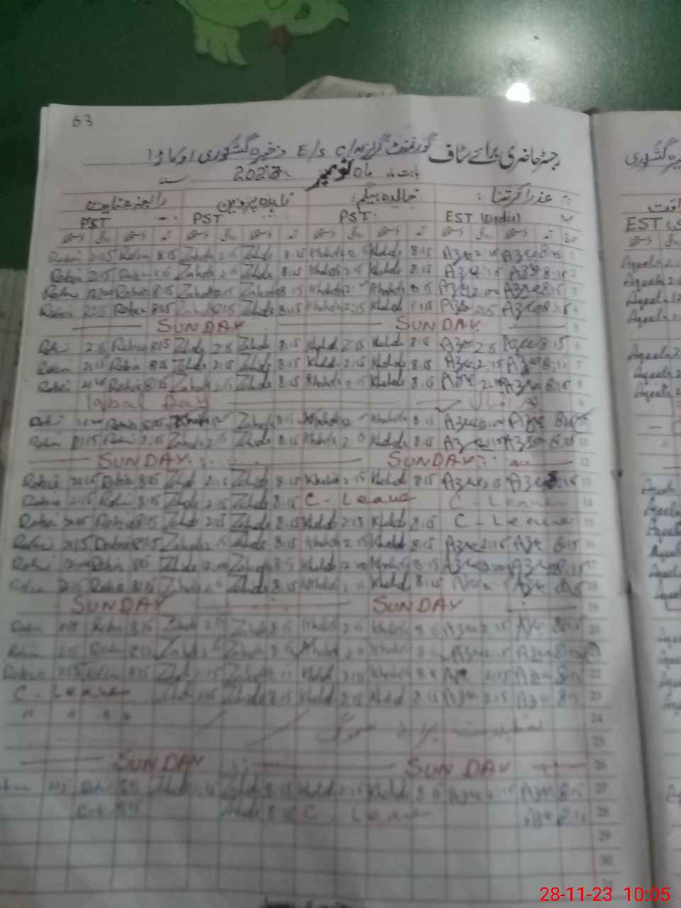 | Leave | Duty | Absent | Maternity | Medical | Ex- Pak |