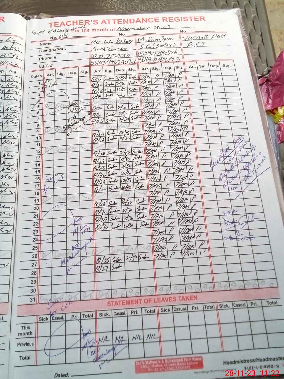 | Name: Mu**** Wa**** Designation: (School Headmaster's/Headmistress's) PST Phone/Cell Number: 03**** |