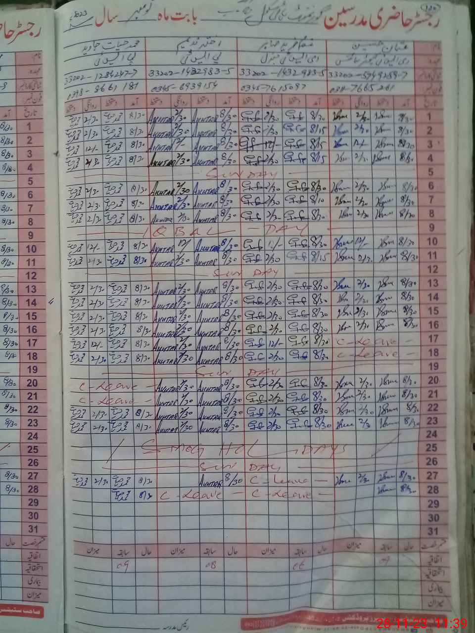 | CNIC | Full Name | Designation | R/C | Absence During Last Calender Month |