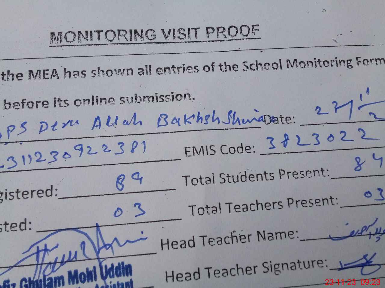 | EMIS Code: 38230022 | Name of School: GPS ALLAH BAKHSH SHUMAR | |||