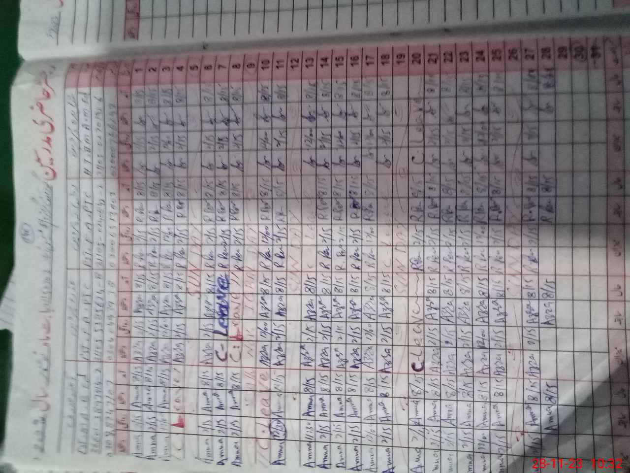 | CNIC | Full Name | Designation | R/C | Absence During Last Calender Month |