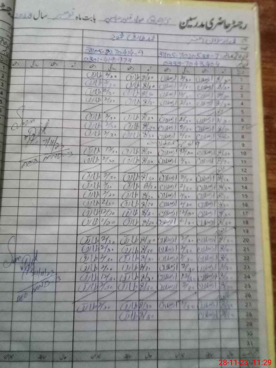 | CNIC | Full Name | Designation | R/C | Absence During Last Calender Month |