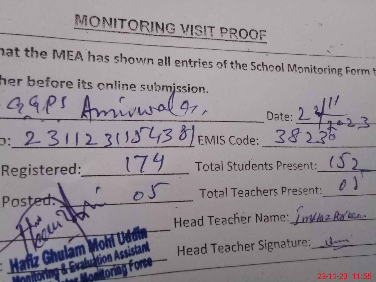| EMIS Code: 38230552 | Name of School: GGPS AMIR WALA | |||