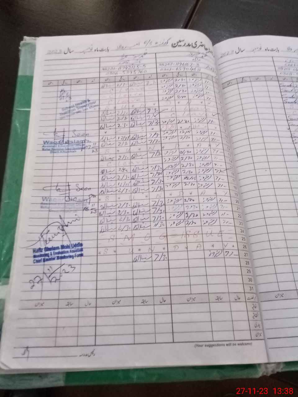 | Monitoring Date: 27-11-2023 | Start Time: 27-11-2023 01:28 PM | End Time: 27-11-2023 01:47 PM | Name of MEA: HA**** GH**** MO**** UDDI**** | |