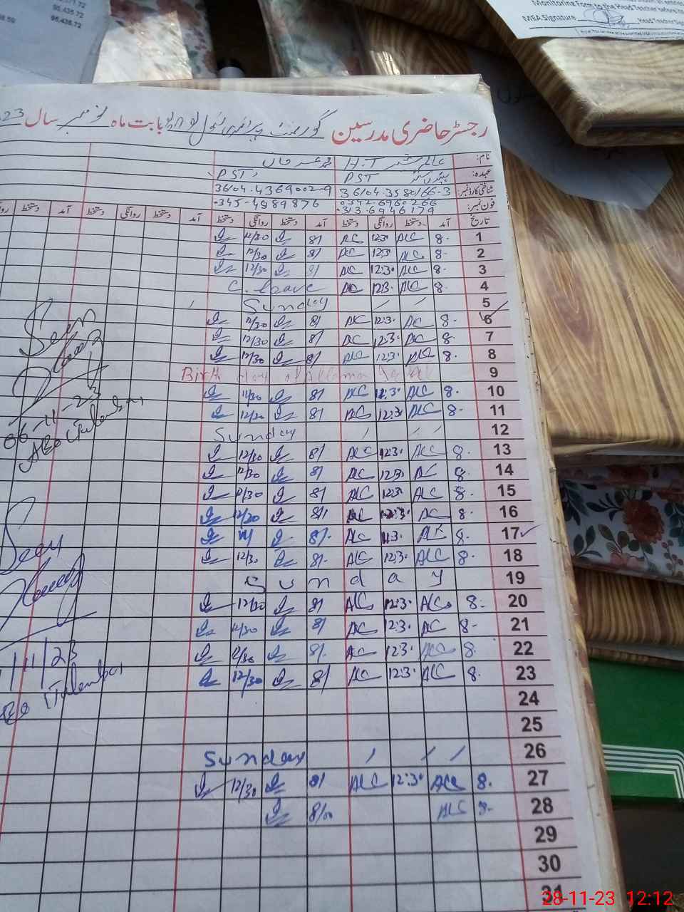 | Name: AL**** SH**** Designation: (School Headmaster's/Headmistress's) PST Phone/Cell Number: 03**** |