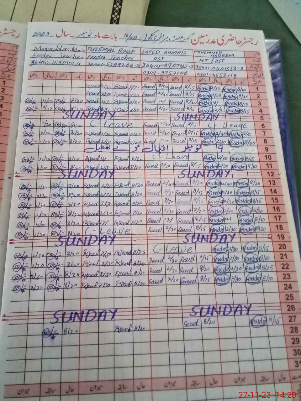 | Name: Mu**** Na**** Designation: (School Headmaster's/Headmistress's) PST Phone/Cell Number: 03**** |