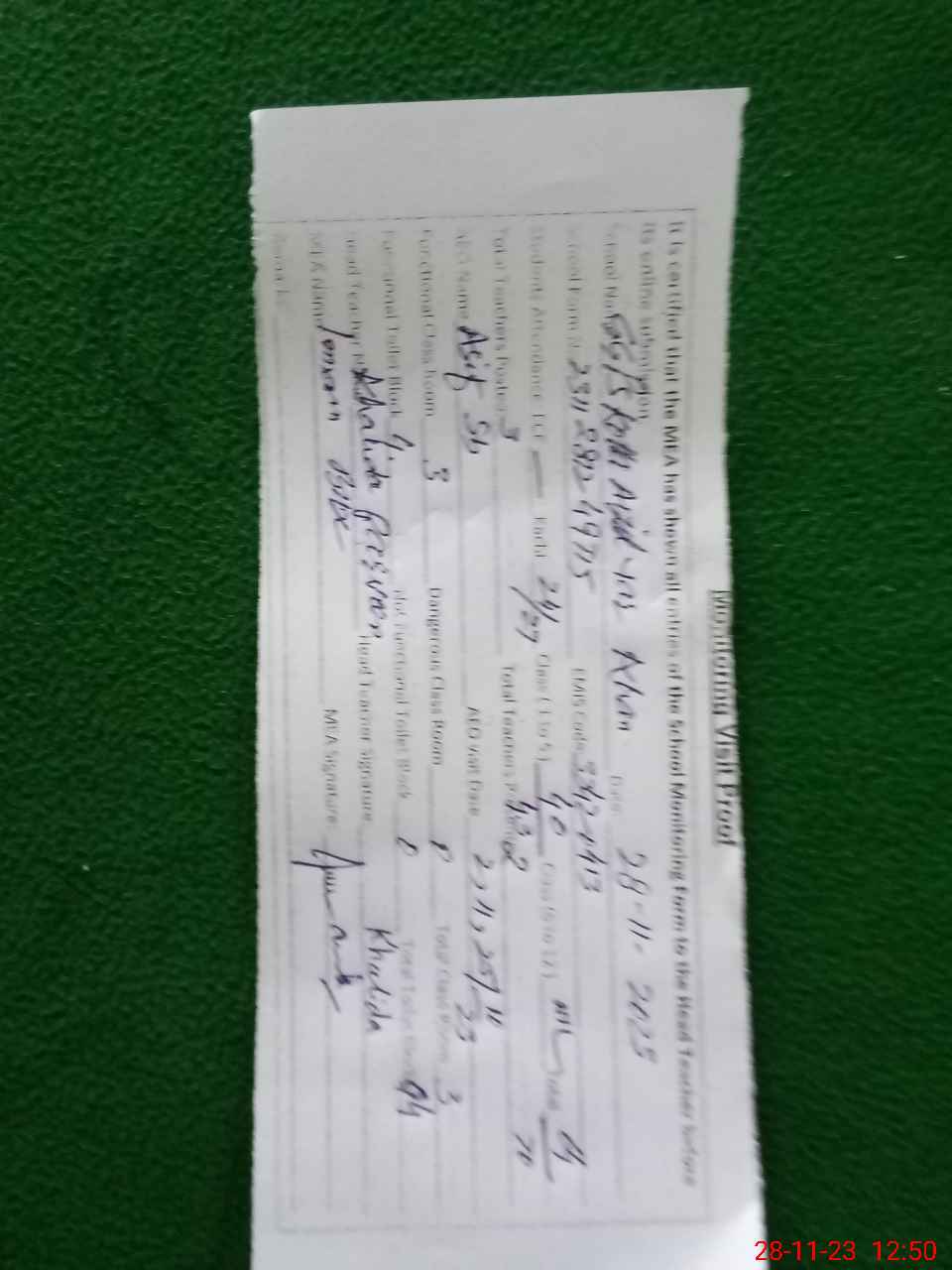 | Certified that this School was Inspected by the Undersigned MEA/DMO Today and the Information Stated Above is as Per Record. | |||||