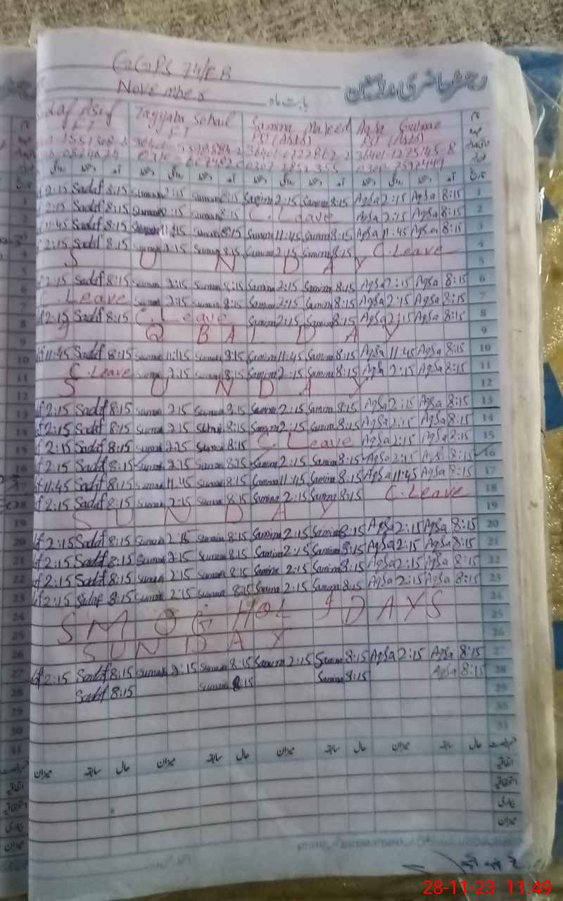 | CNIC | Full Name | Designation | R/C | Absence During Last Calender Month |