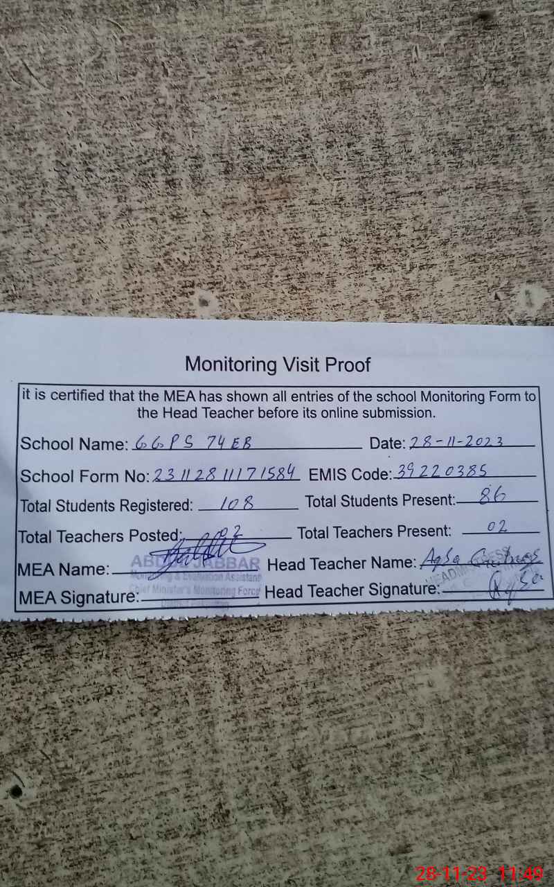 | EMIS Code: 39220385 | Name of School: GGPS 74 EB ARIFWALA | |||