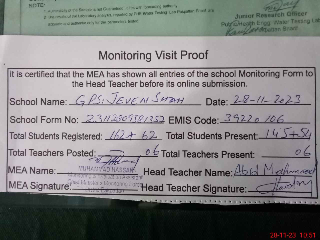 | Monitoring Date: 28-11-2023 | Start Time: 28-11-2023 09:58 AM | End Time: 28-11-2023 10:51 AM | Name of MEA: MU**** HA**** | |