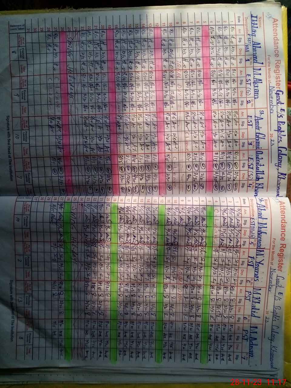 | CNIC | Full Name | Designation | R/C | Absence During Last Calender Month |