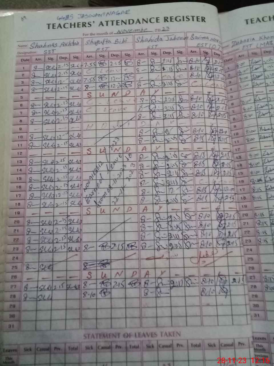 | Name: SH**** AK**** Designation: (School Headmaster's/Headmistress's) S.S.T.(SC) Phone/Cell Number: 03**** |