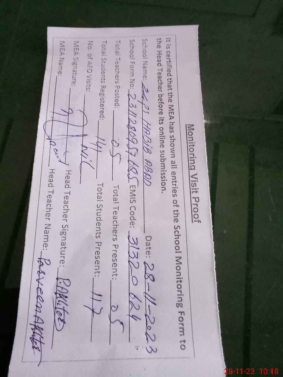 | EMIS Code: 31320624 | Name of School: GGPS HABIB ABAD | |||