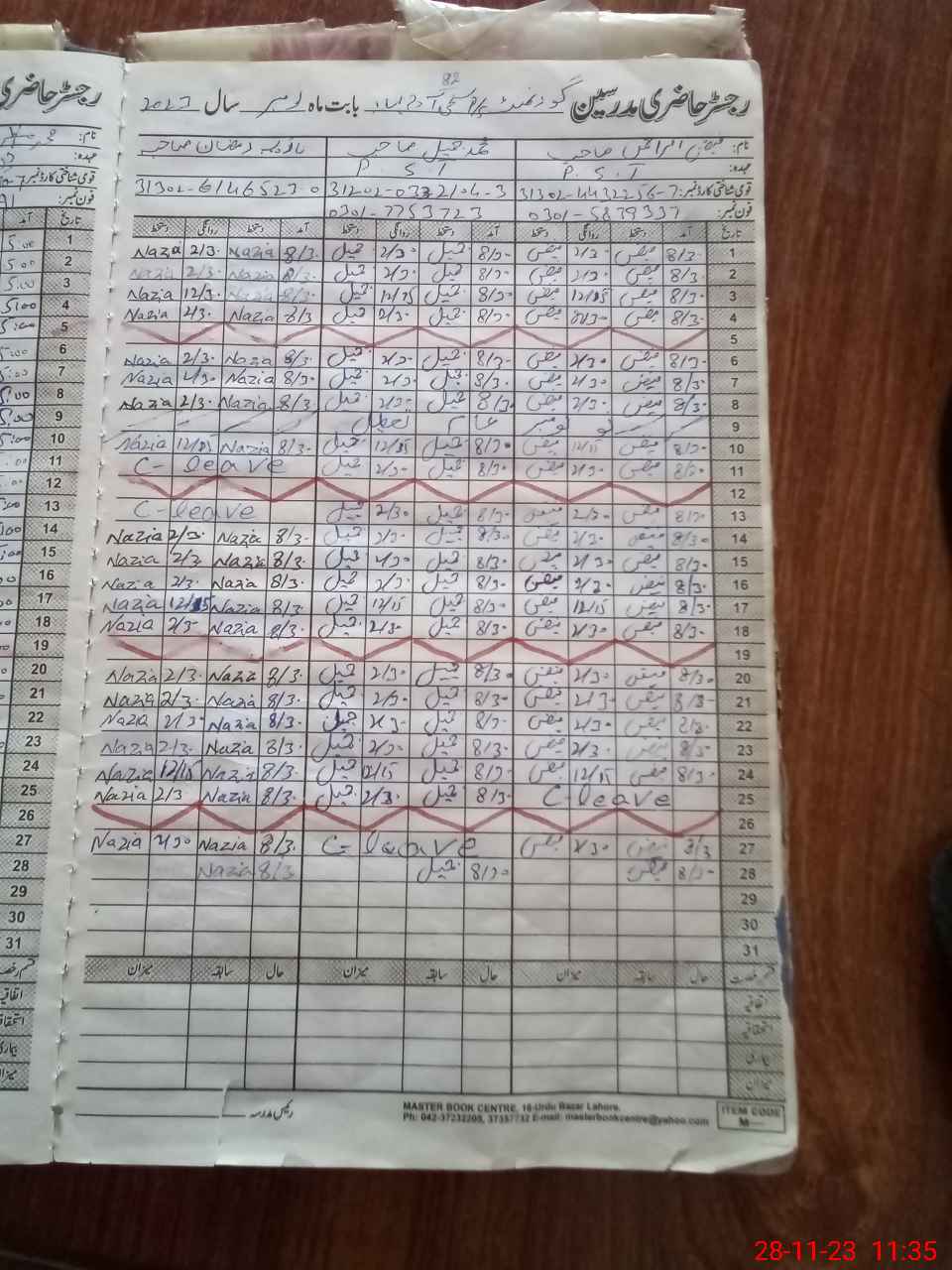 | Name: FA**** URRE**** Designation: (School Headmaster's/Headmistress's) PST/PTC/JV Phone/Cell Number: 03**** |