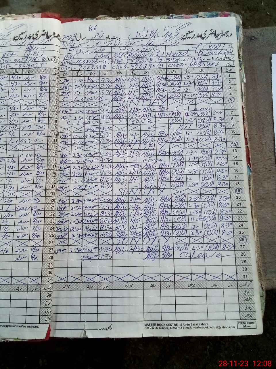 | CNIC | Full Name | Designation | R/C | Absence During Last Calender Month |