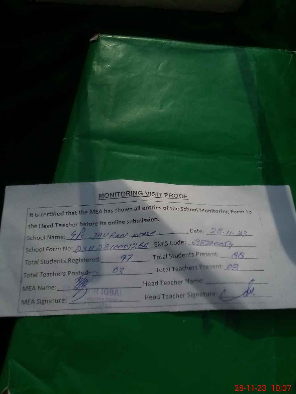 | EMIS Code: 38220054 | Name of School: GES JAURAN WALA | |||