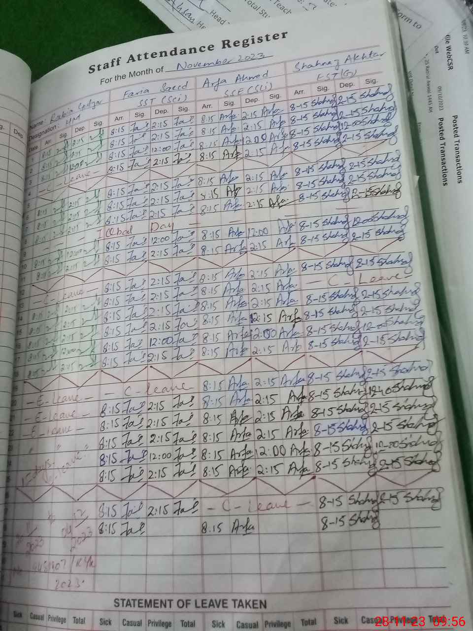 | CNIC | Full Name | Designation | R/C | Absence During Last Calender Month |