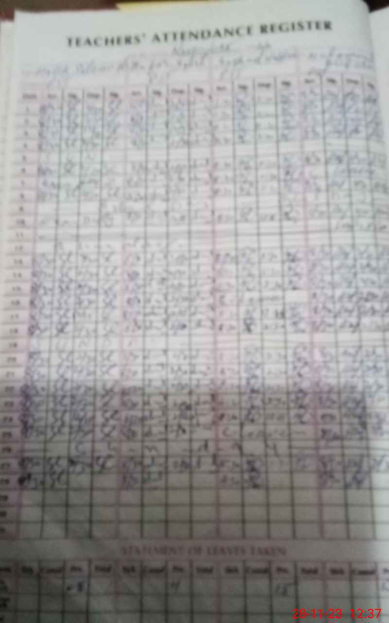 | No. of Students Present - Male | 33 | 0 | 88 | 37 | 44 | 46 | 35 | 27 | 38 | 24 | 28 | 400 | ||||