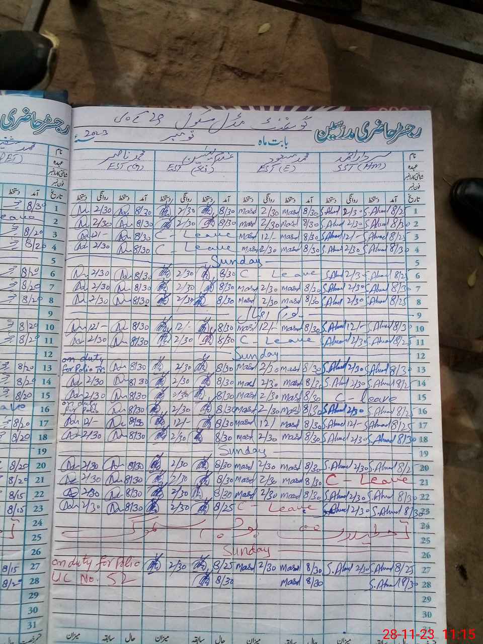 | CNIC | Full Name | Designation | R/C | Absence During Last Calender Month |