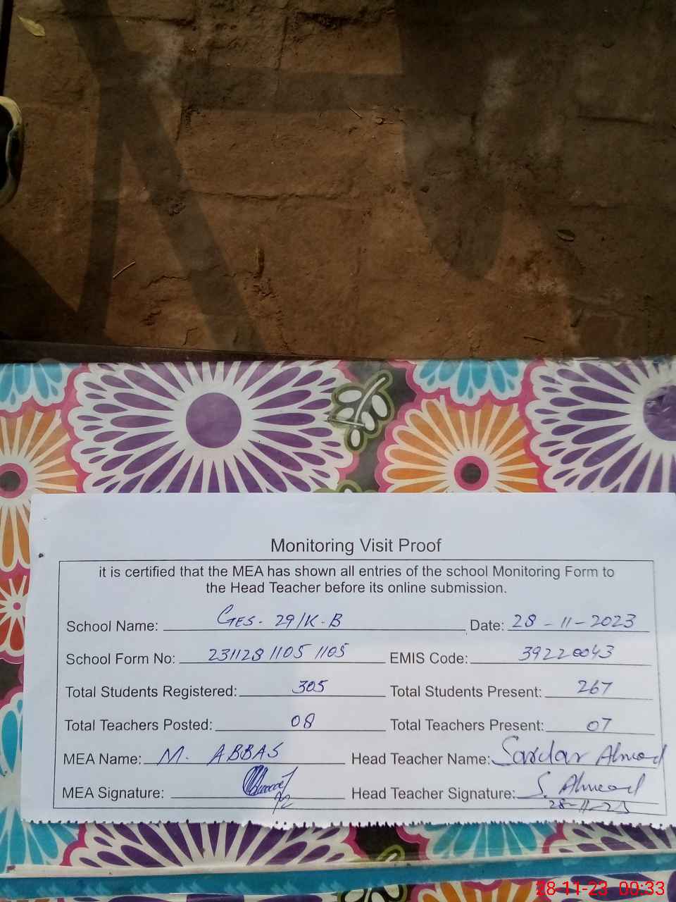 | EMIS Code: 39220043 | Name of School: GES CHAK NO. 29 KB | |||