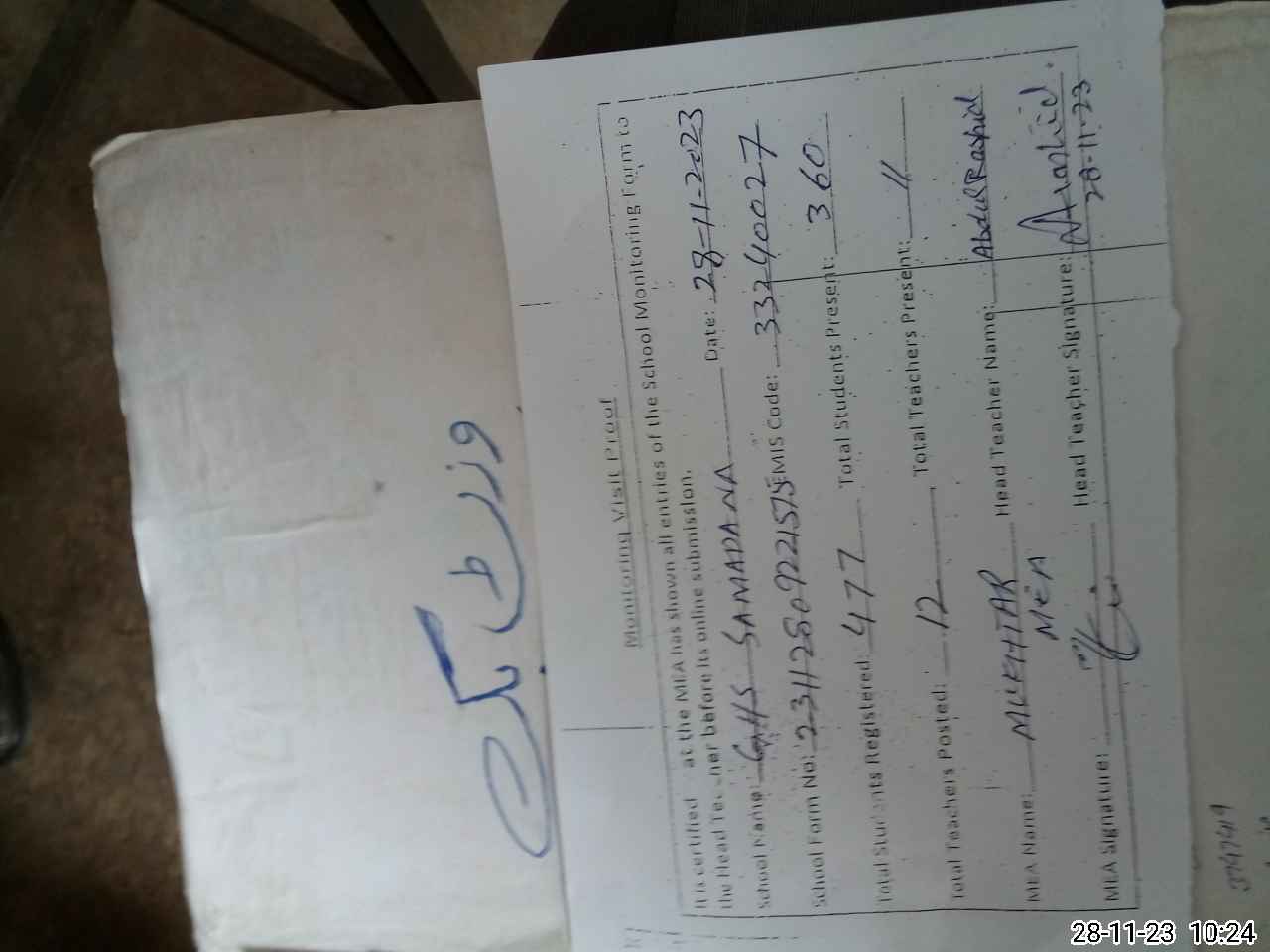 | Name: Zu**** Al**** Designation: (School Headmaster's/Headmistress's) EST. I C HEAD MASTER Phone/Cell Number: 03**** |
