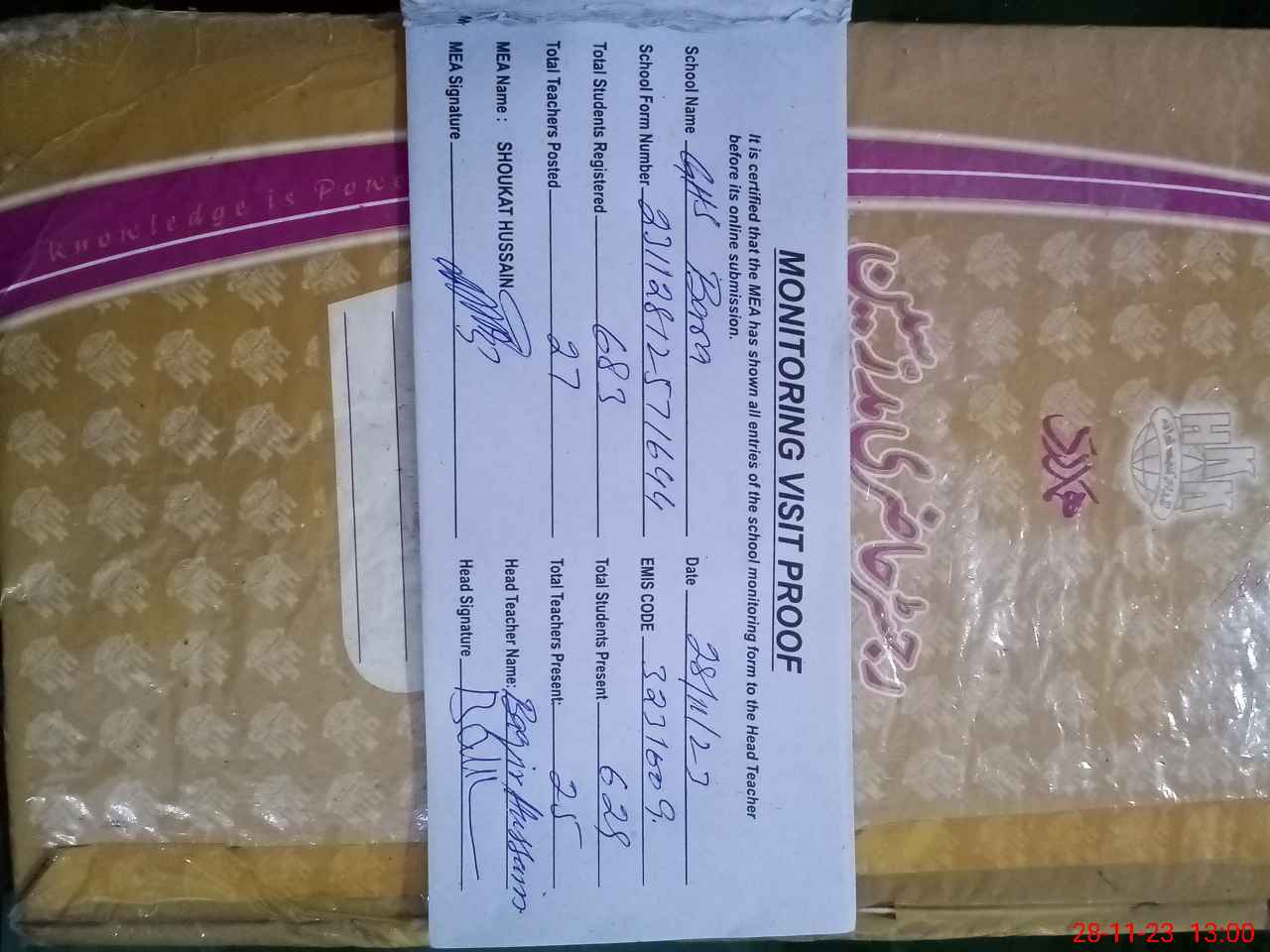 | Attendance Register | Head Teacher | MEA with School | Visit Proof |