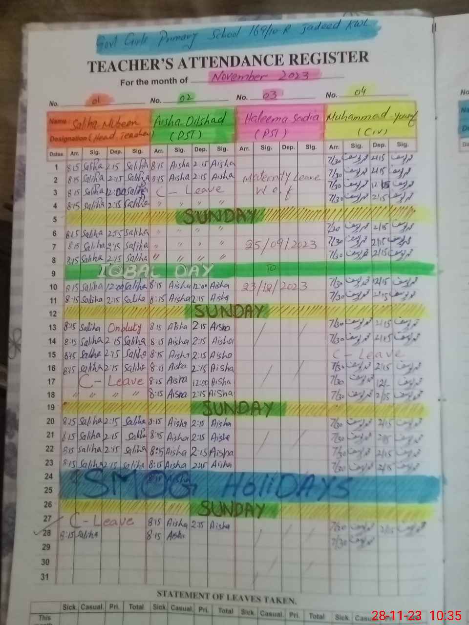 | Leave | Duty | Absent | Maternity | Medical | Ex- Pak |