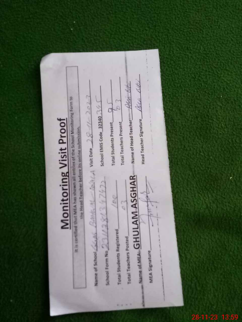 | EMIS Code: 32340345 | Name of School: GGPS BAHAWAL WALA | |||