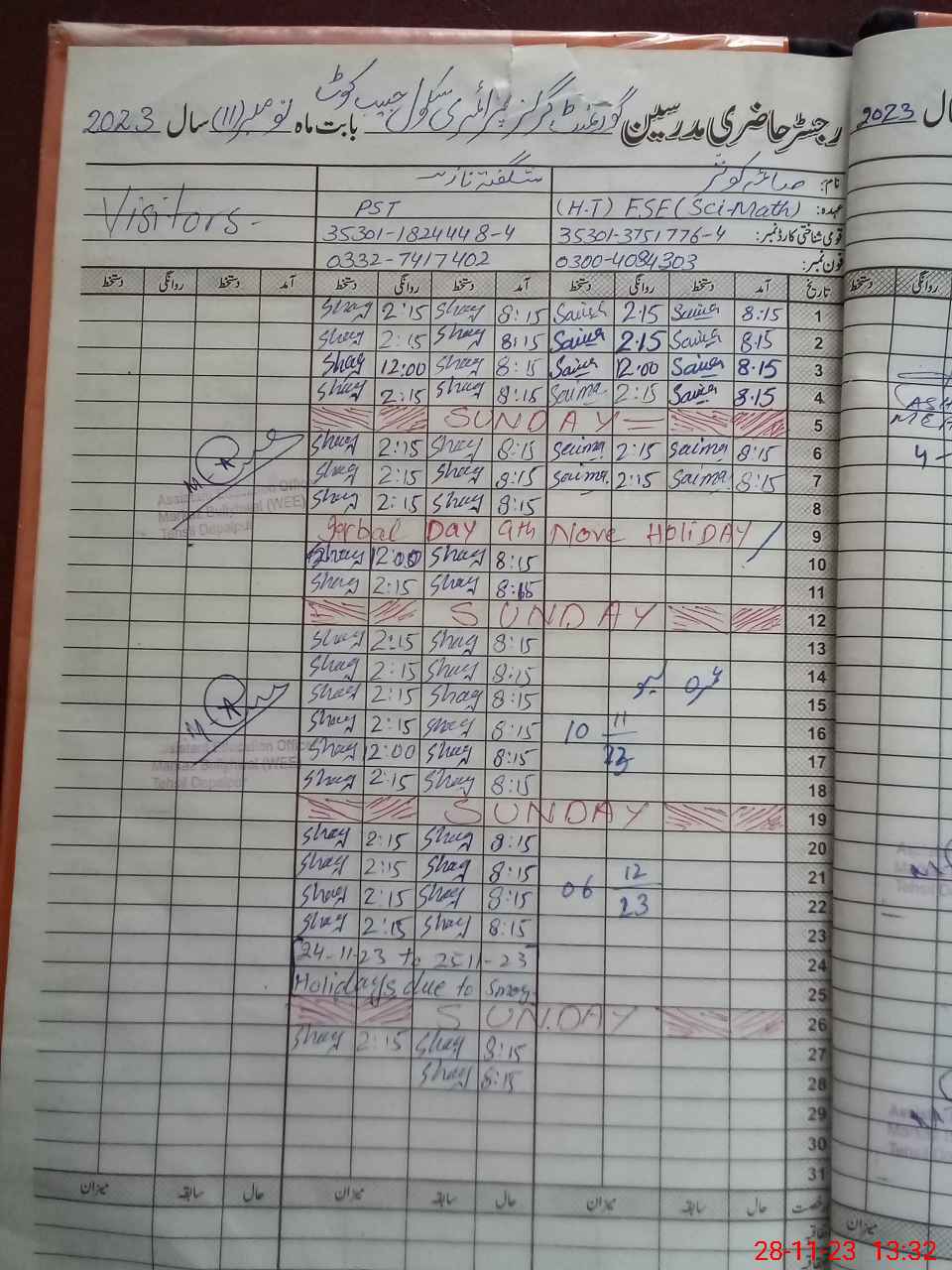 | Name: Sa**** Ko**** Designation: (School Headmaster's/Headmistress's) PST Phone/Cell Number: 03**** |