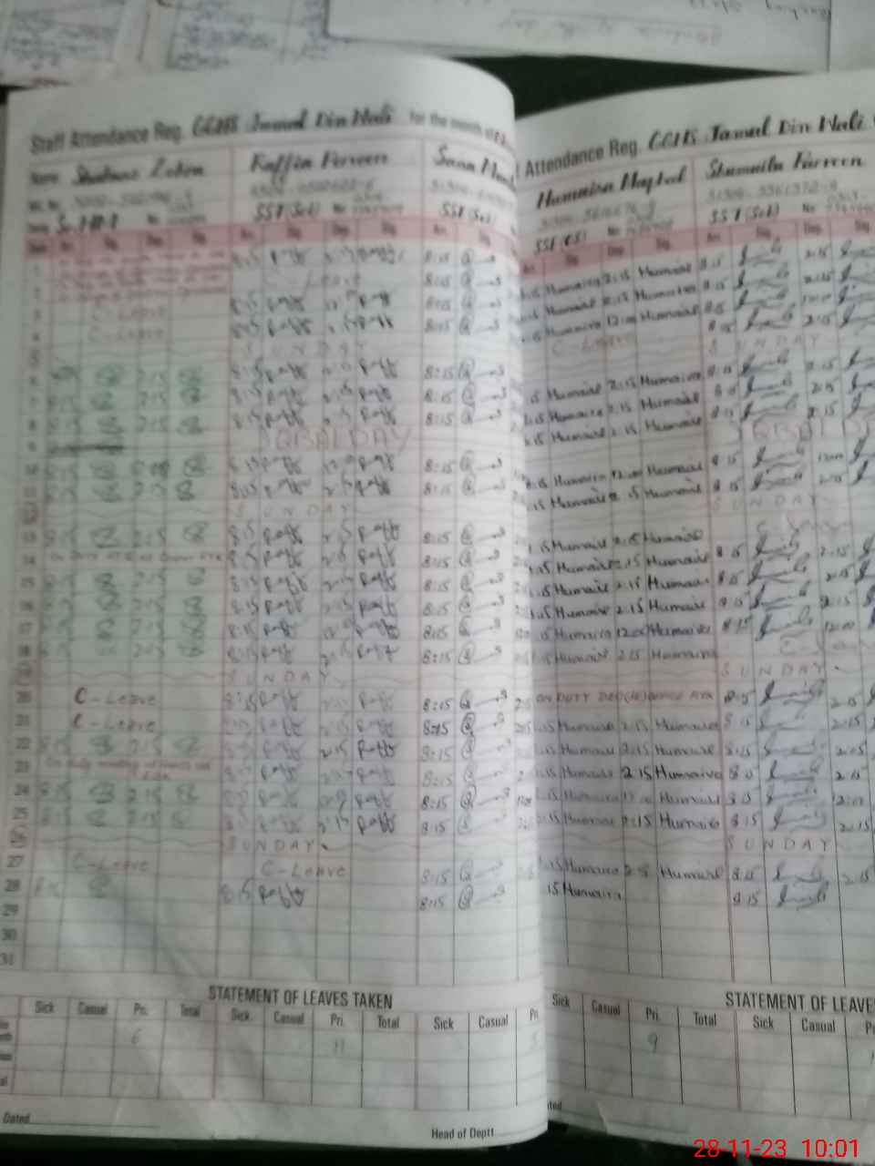 | Leave | Duty | Absent | Maternity | Medical | Ex- Pak |