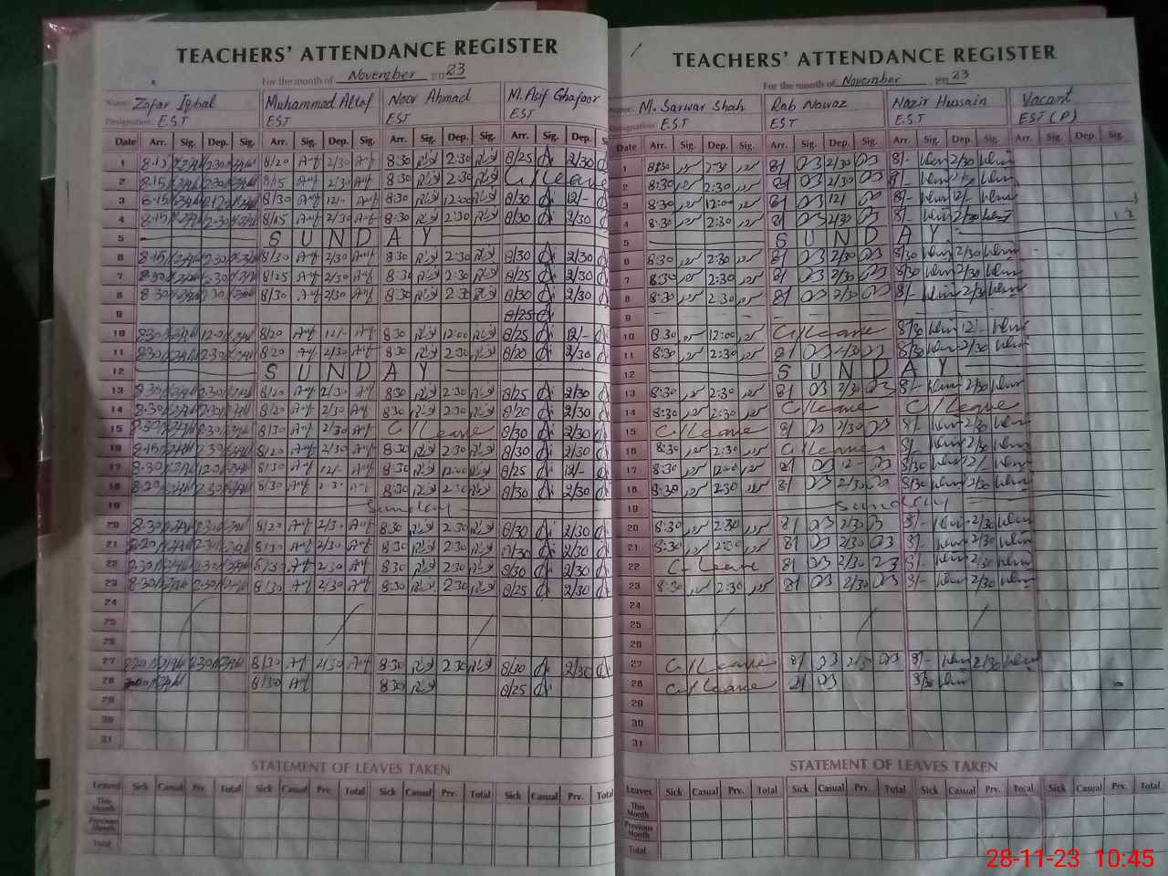 | CNIC | Full Name | Designation | R/C | Absence During Last Calender Month |