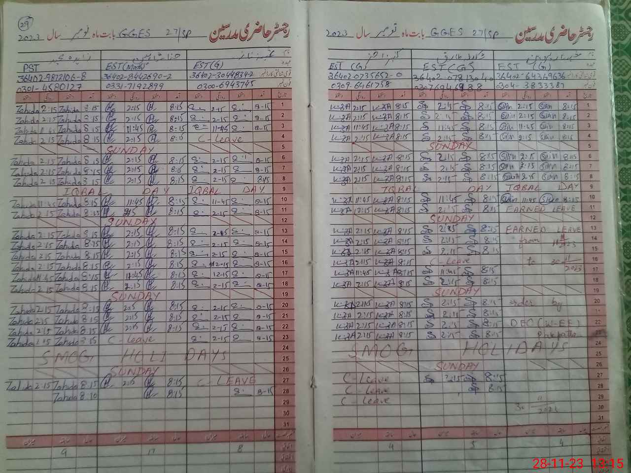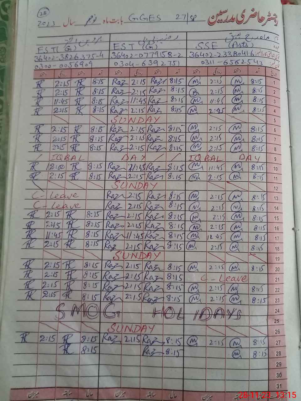 | CNIC | Full Name | Designation | R/C | Absence During Last Calender Month |