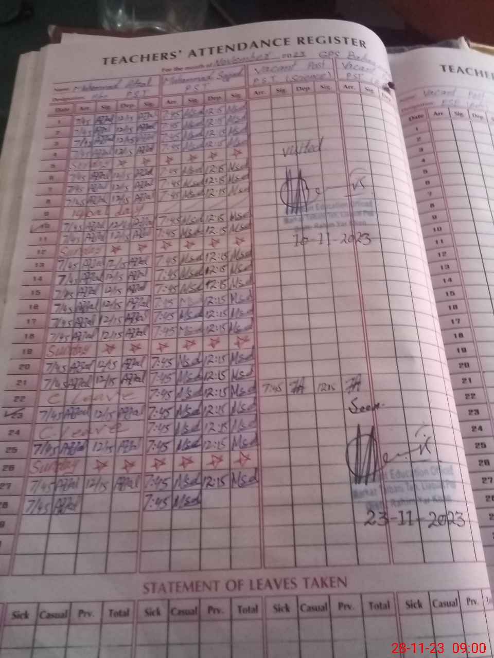 | Name: M.AF**** Designation: (School Headmaster's/Headmistress's) PST/PTC/JV Phone/Cell Number: 03**** |