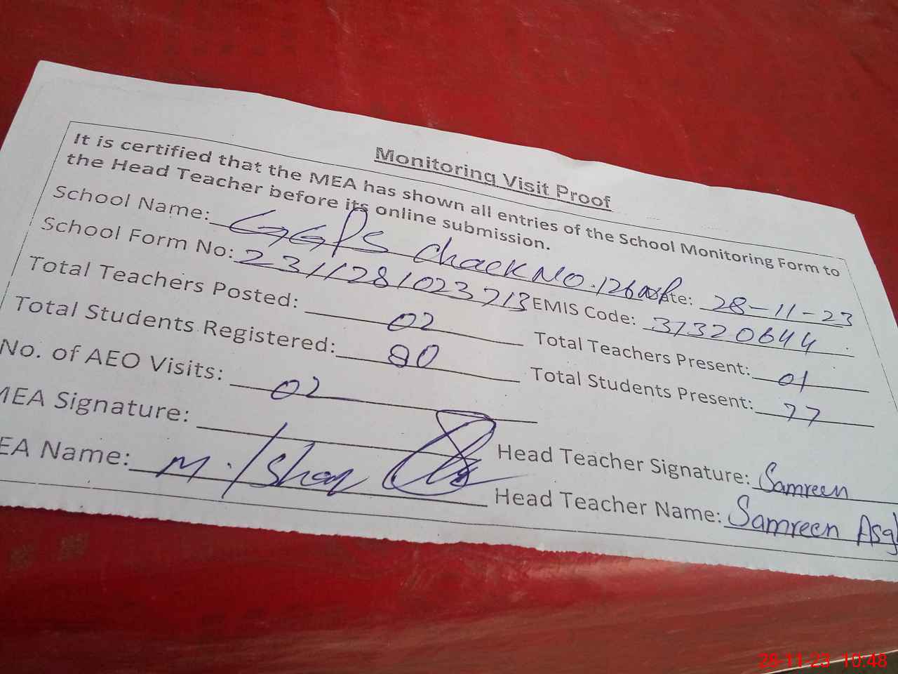 | EMIS Code: 31320644 | Name of School: GGPS CHAK 126/NP | |||