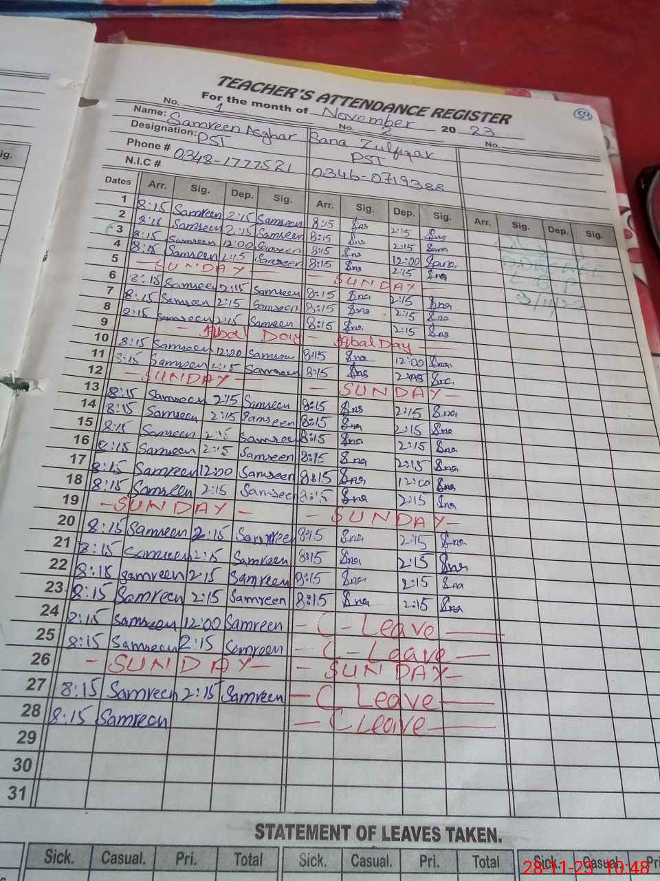 | 31**** | Sa**** Zu**** | 1 | 1 | 0 | 0 | 0 | 0 | 0 | 0 | 0 | 0 | 0 | Absent (Un-Authorized) |