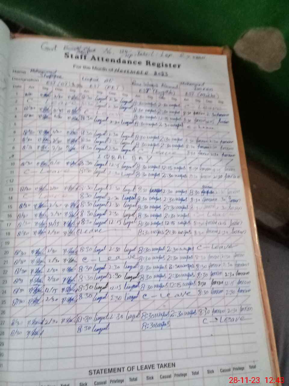 | 31**** | Mu**** Am**** | 3 | 1 | 0 | 0 | 0 | 0 | 0 | 0 | 0 | 0 | 0 | Absent (Un-Authorized) |