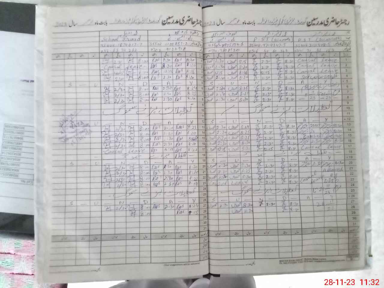 | CNIC | Full Name | Designation | R/C | Absence During Last Calender Month |