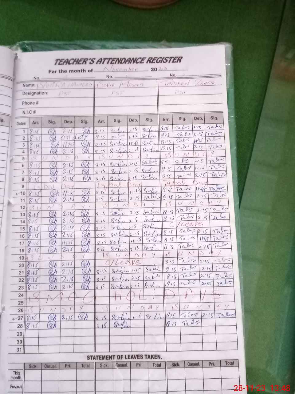 | Name: SA**** HA**** Designation: (School Headmaster's/Headmistress's) PST Head Phone/Cell Number: 03**** |