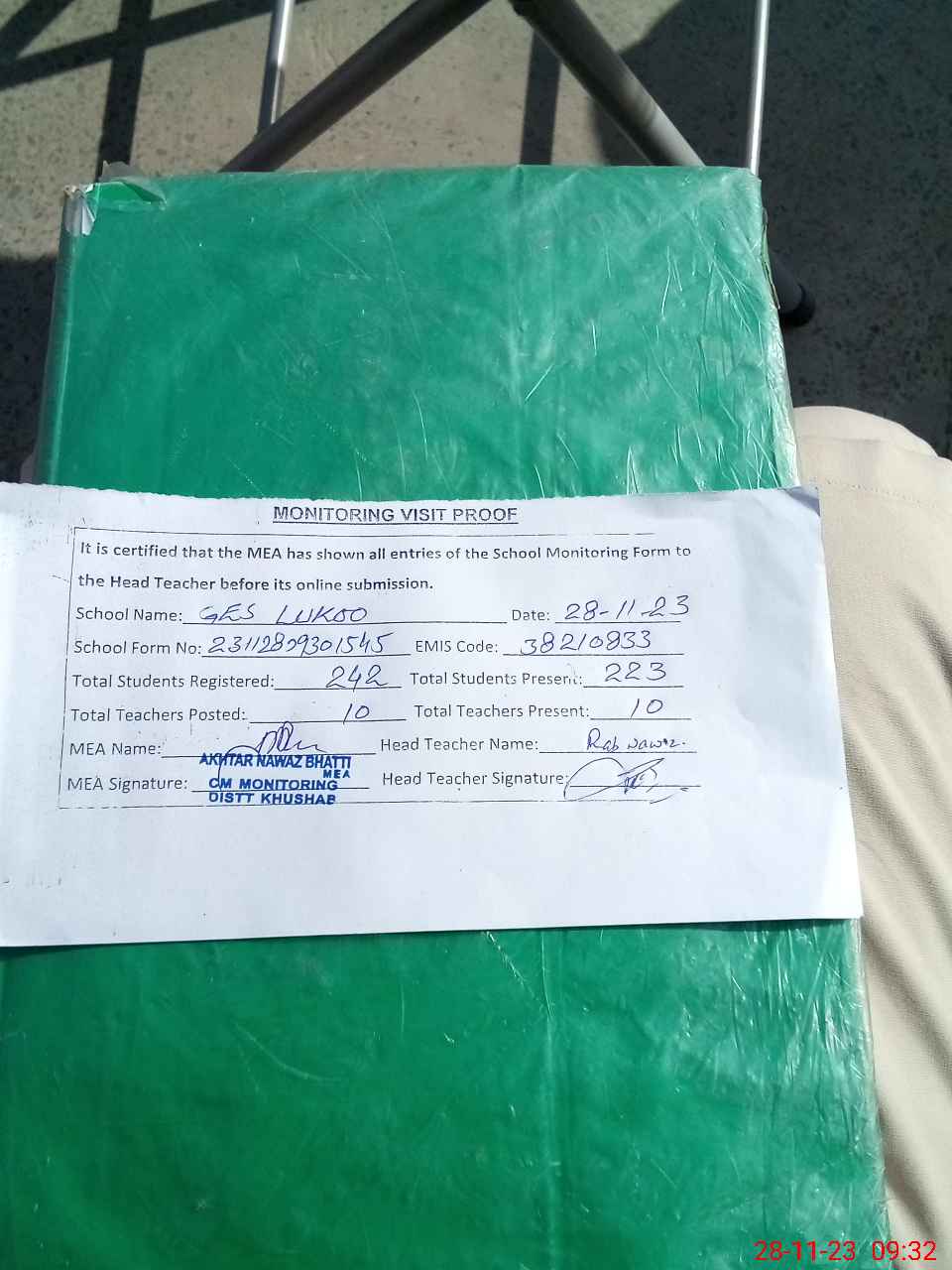 | Certified that this School was Inspected by the Undersigned MEA/DMO Today and the Information Stated Above is as Per Record. | |||||