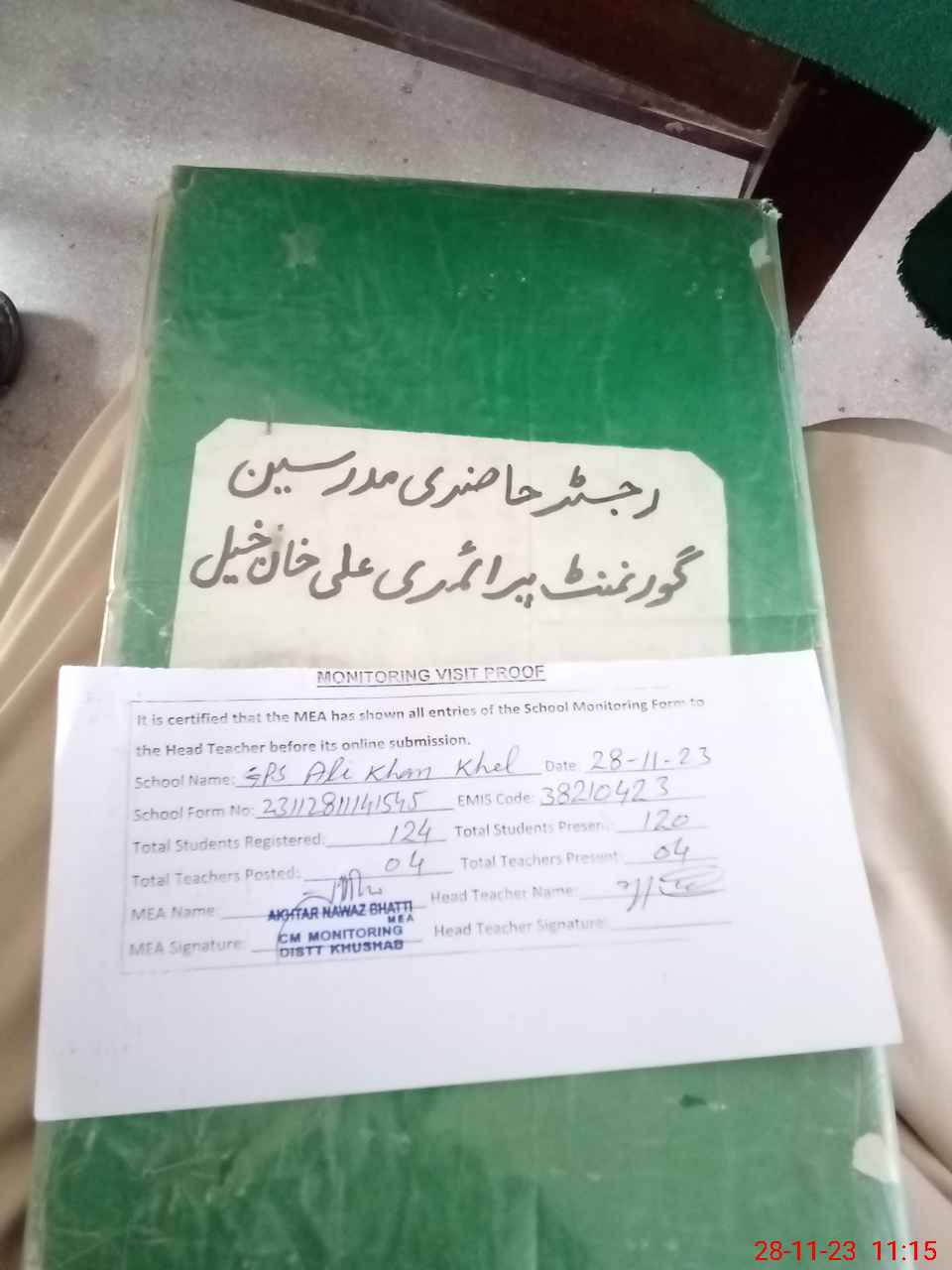 | EMIS Code: 38210423 | Name of School: GPS ALI KHAN KHAIL | |||