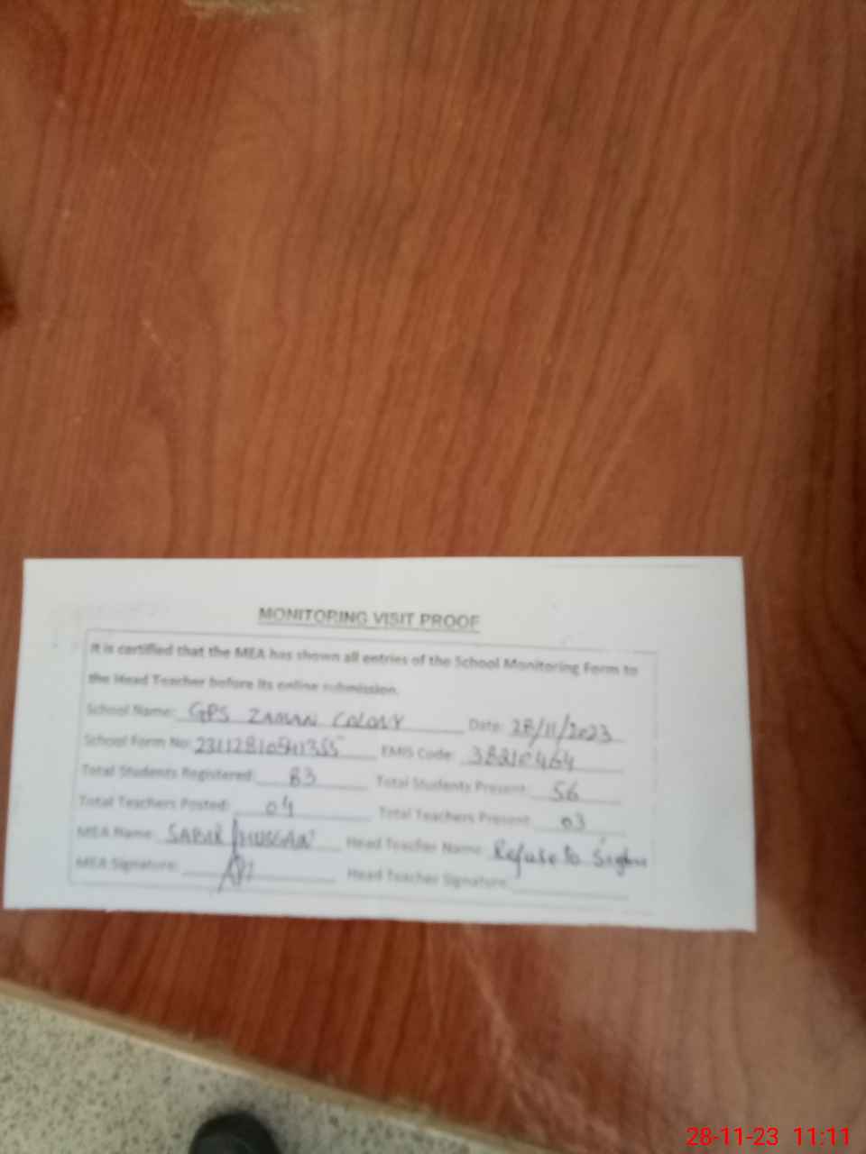 | EMIS Code: 38210464 | Name of School: GPS ZAMAN COLONY | |||
