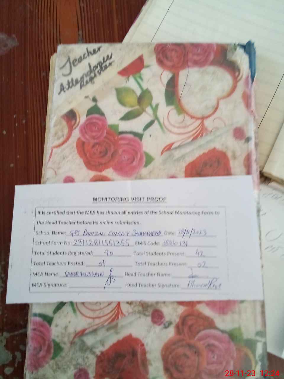| Attendance Register | Head Teacher | MEA with School | Visit Proof |
